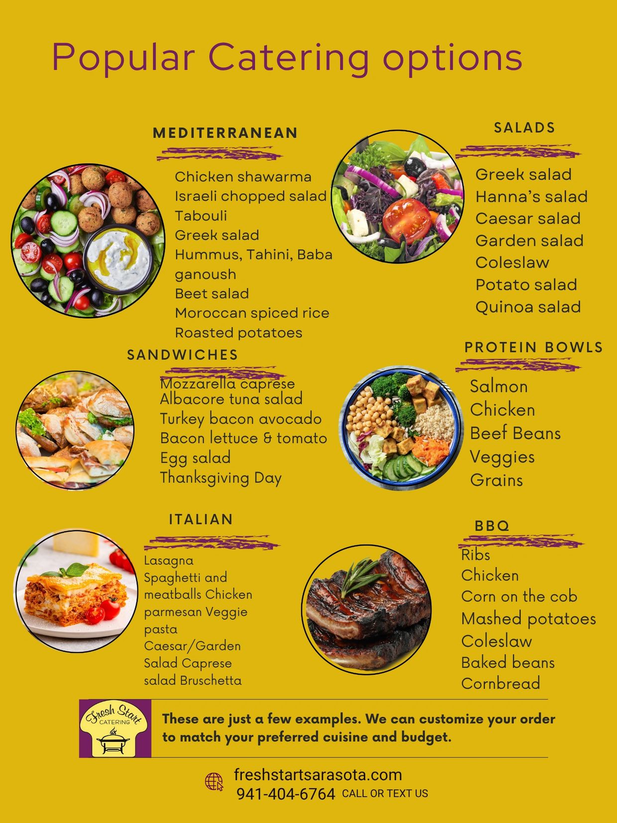 At Fresh Start Sarasota, we believe that food should be fresh, flavorful, and made with love. We aim to cater to every palate. We design each dinner to your specifications.